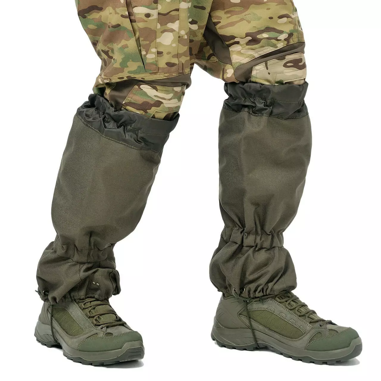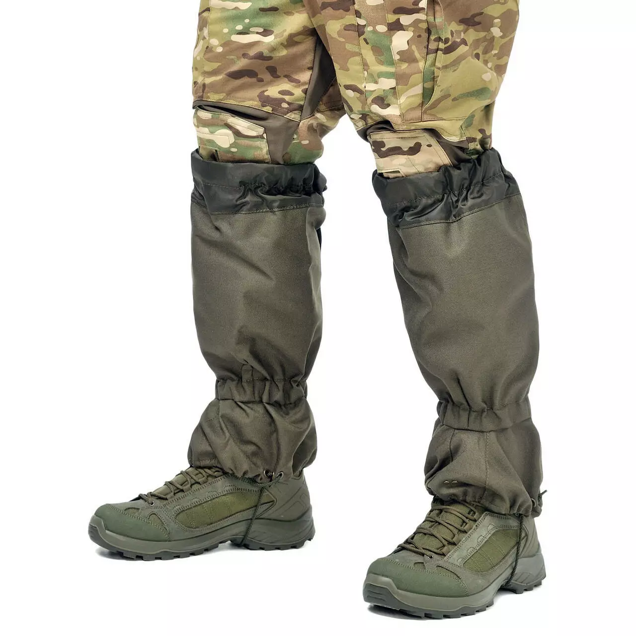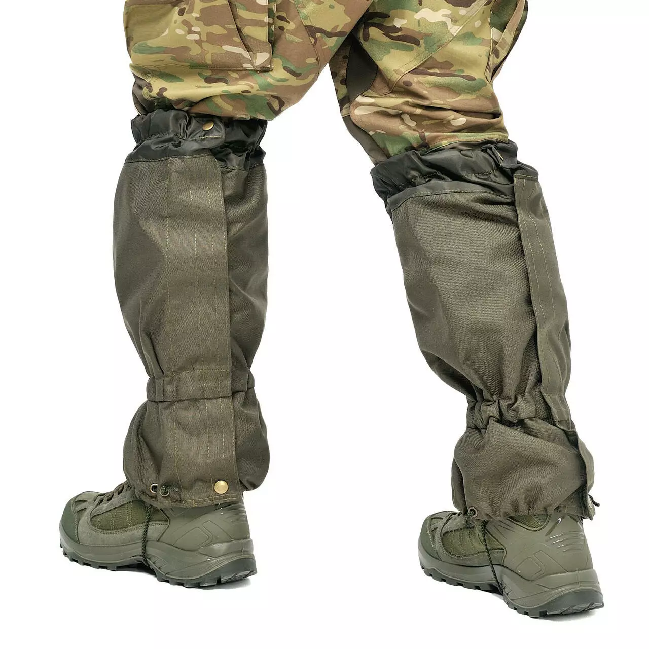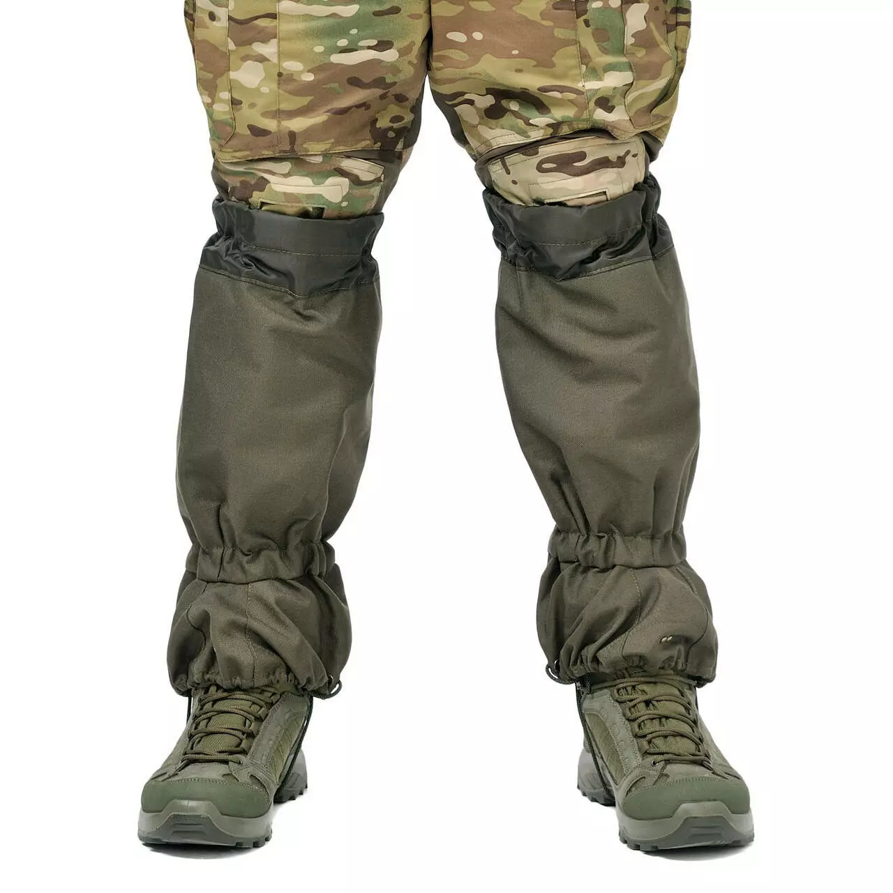 Зверху захисні гамаші олива мають м'які вставки, які стягуються в