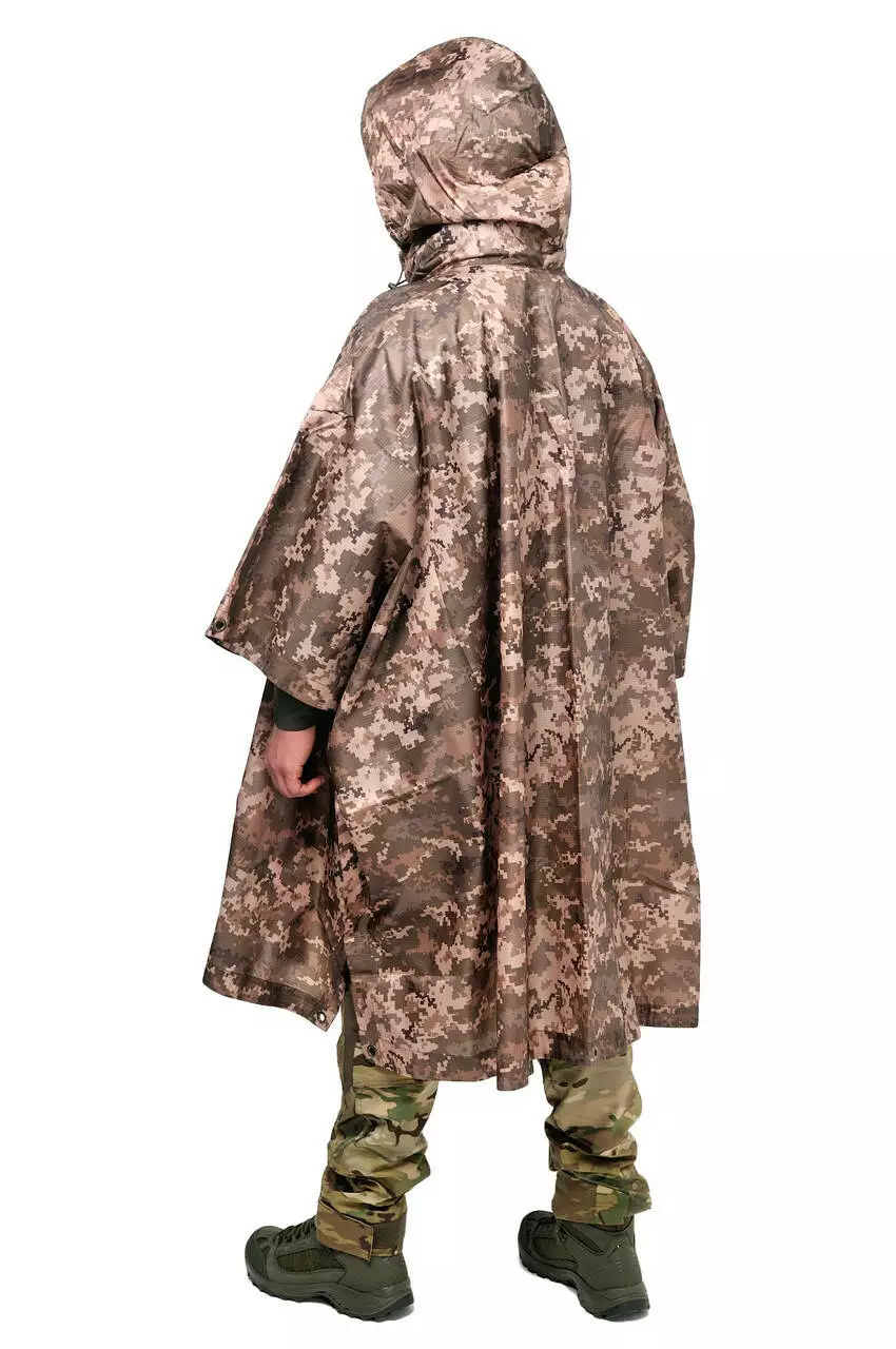 Пончо-дощовик у кольорі піксель дуже просто і швидко одягається