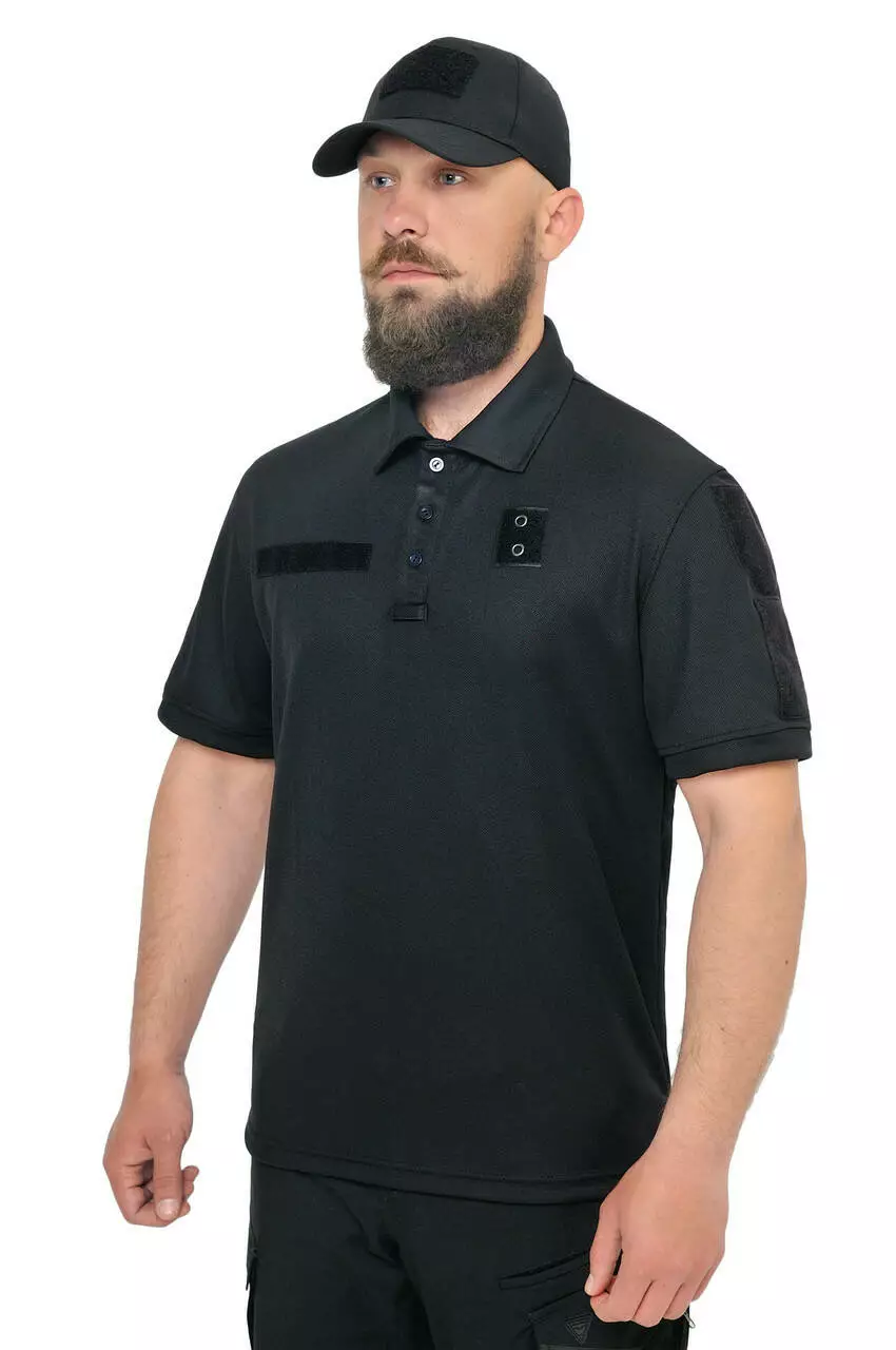 Футболка поло чорна з короткими рукавами - легка, дихаюча і