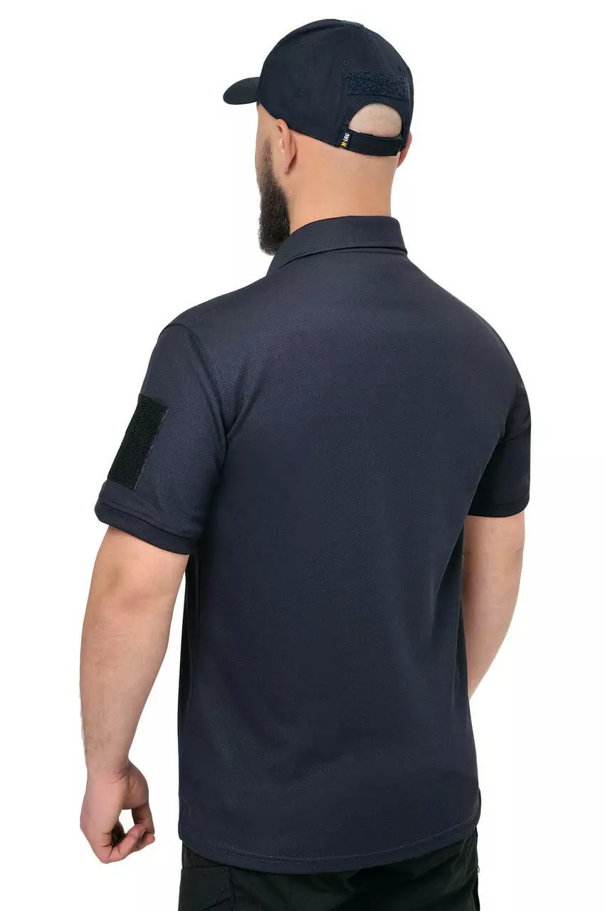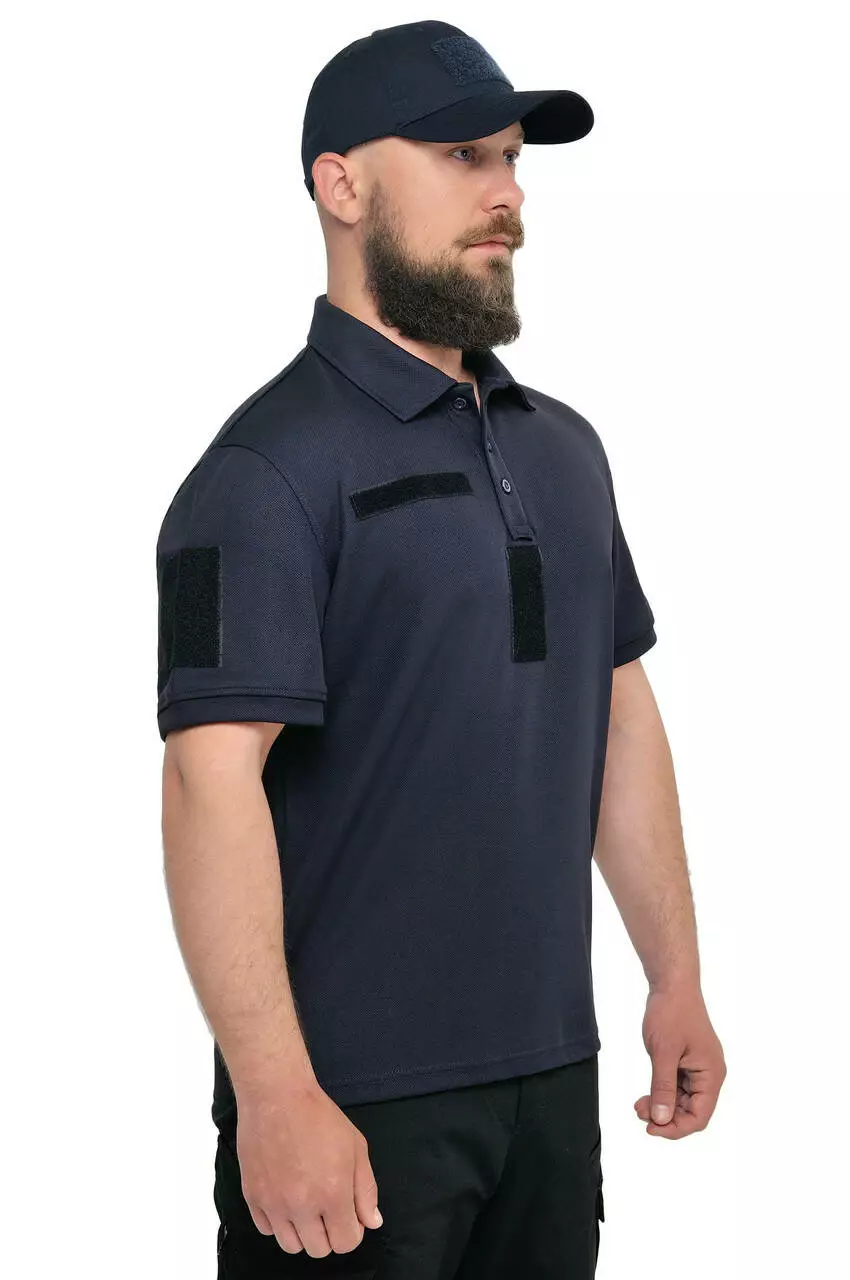 Тактична футболка поло темно-синя з велкропанелями та короткими