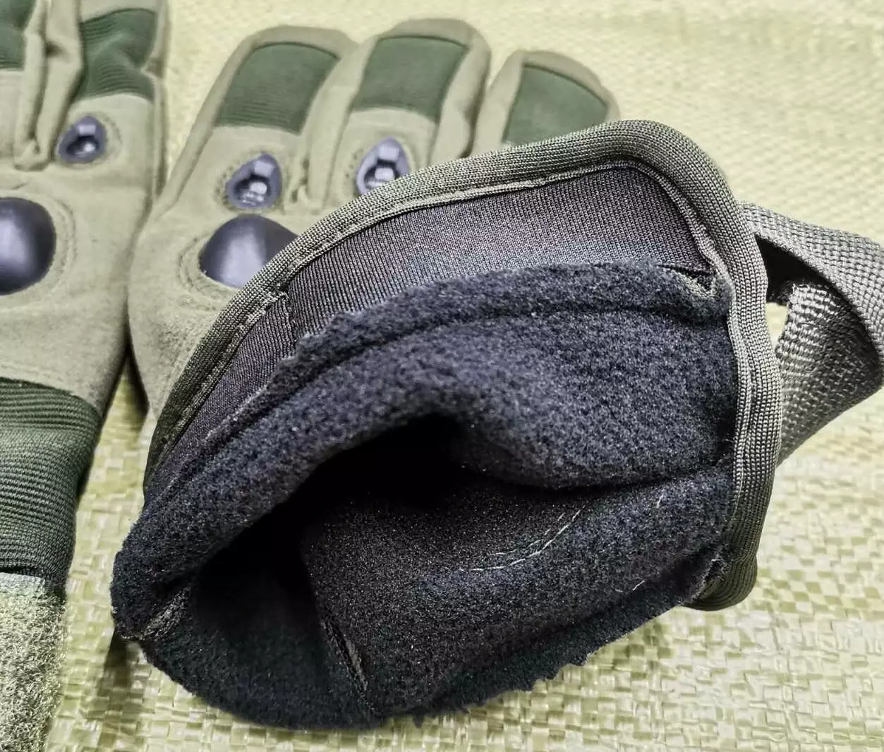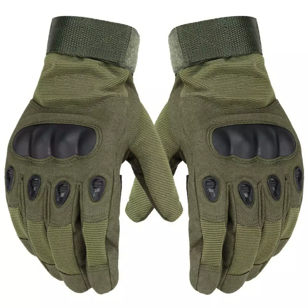 Тактичні повнопалі рукавички оливкового кольору.