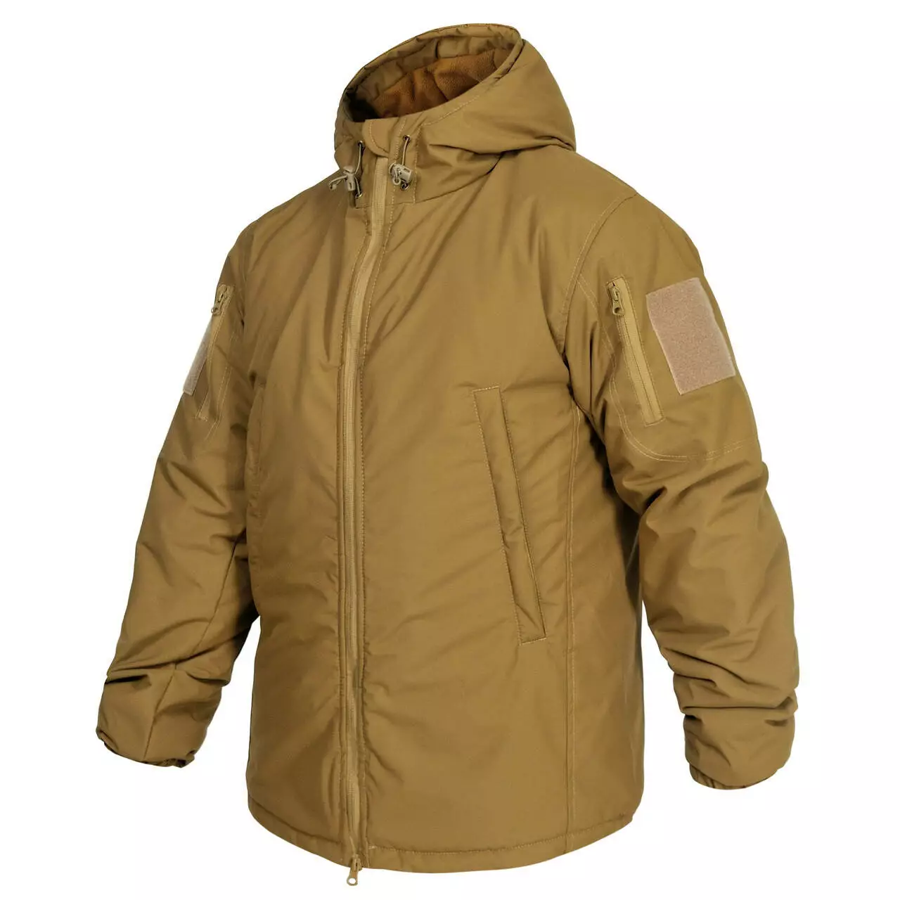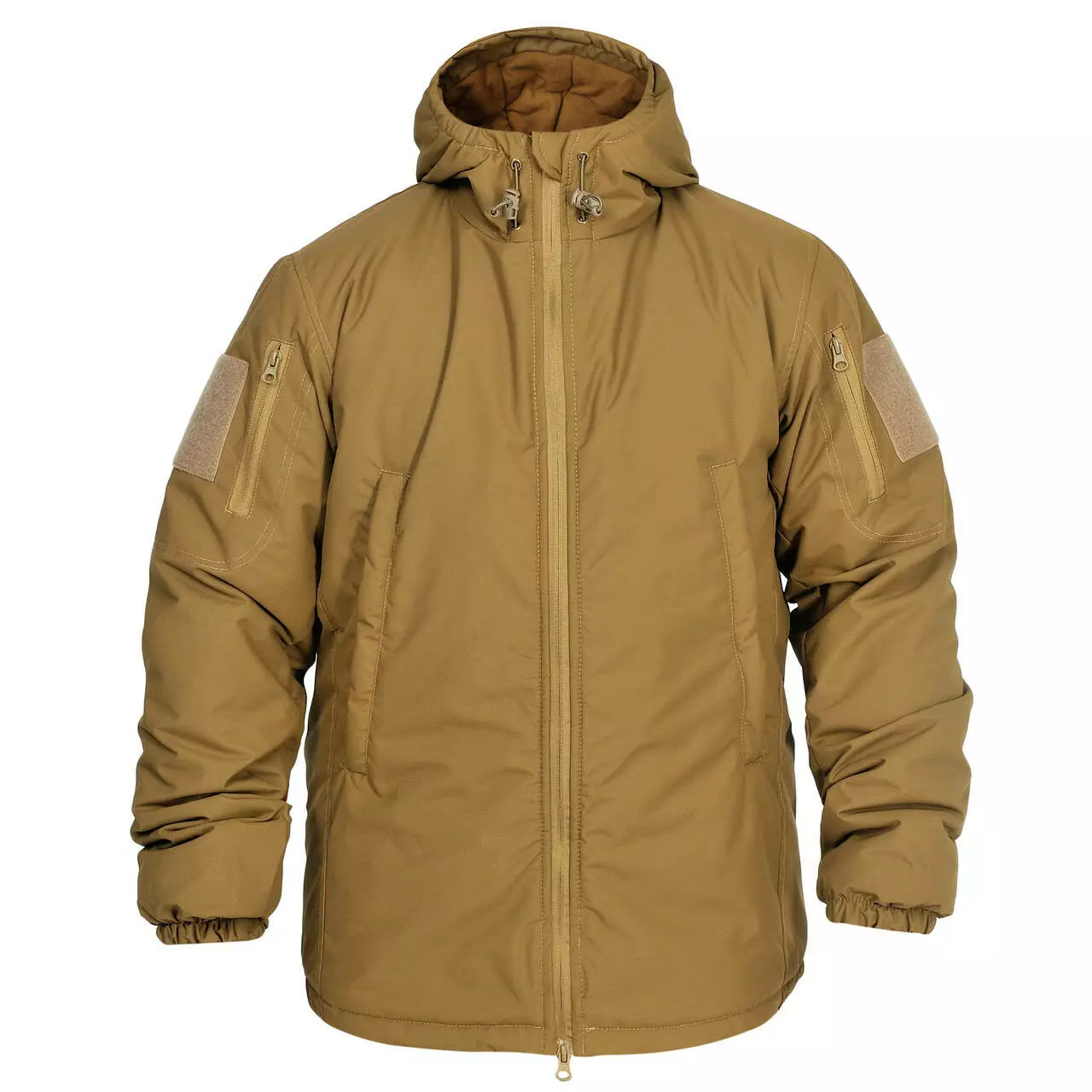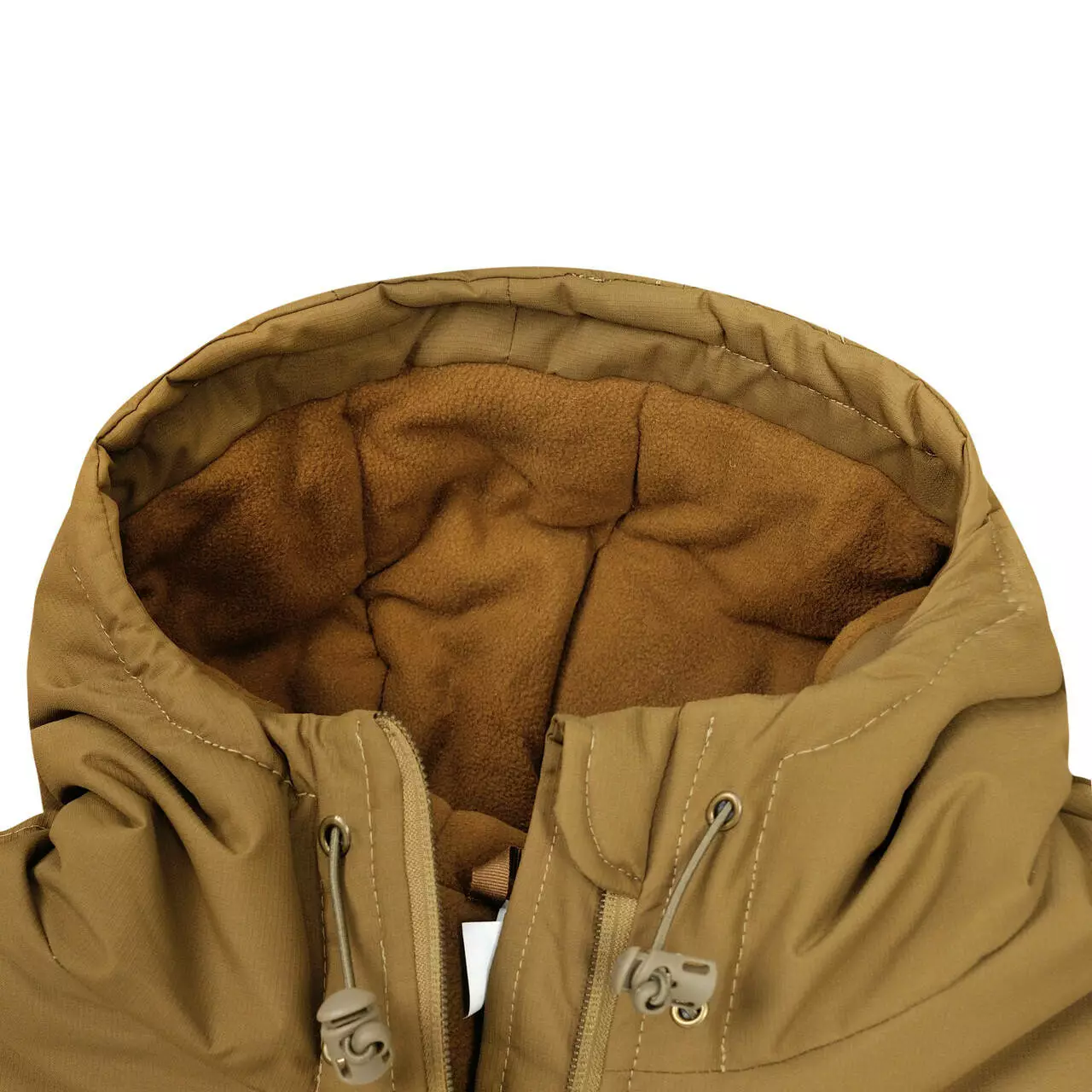 - Капюшон, оснащений утяжками для кращого прилягання та захисту від