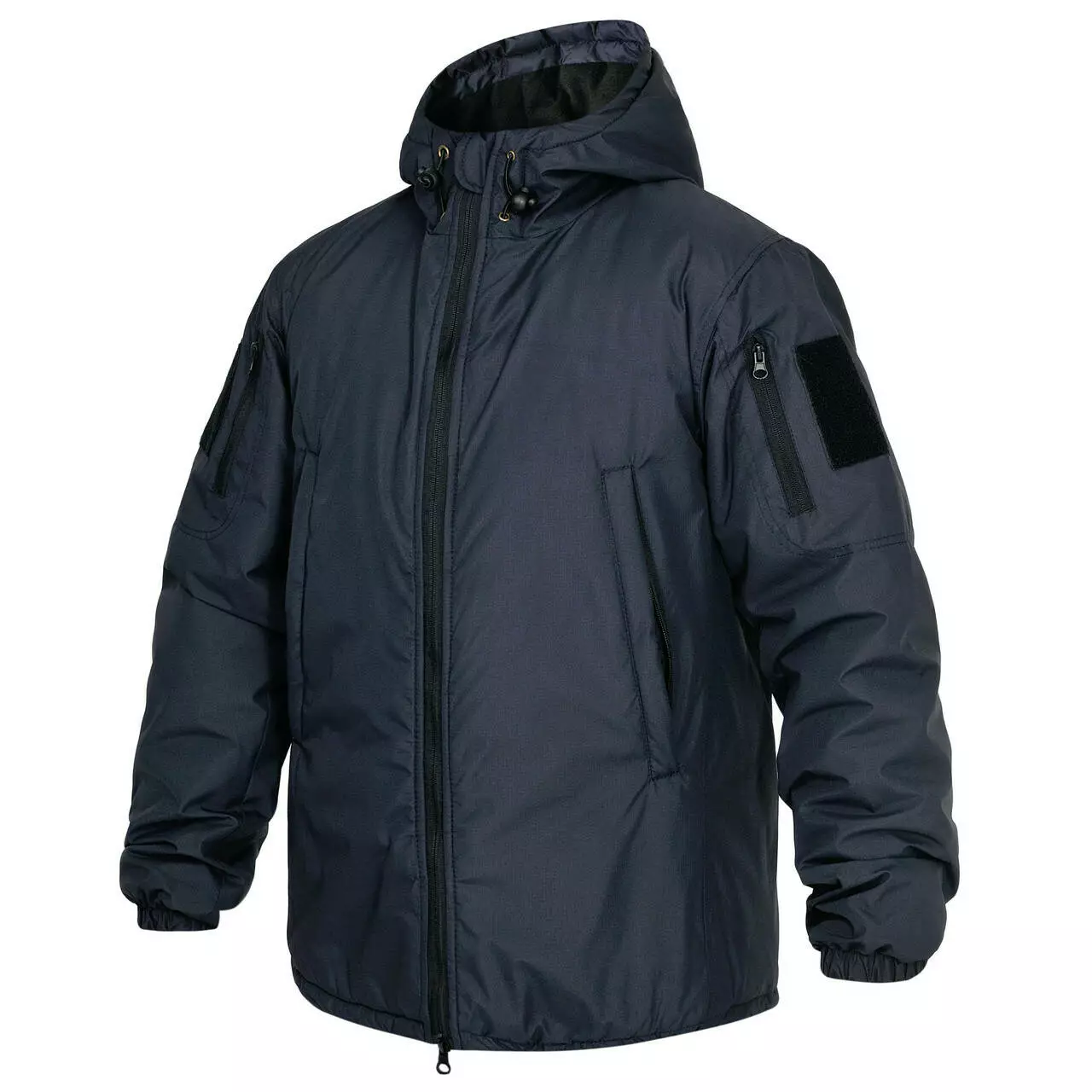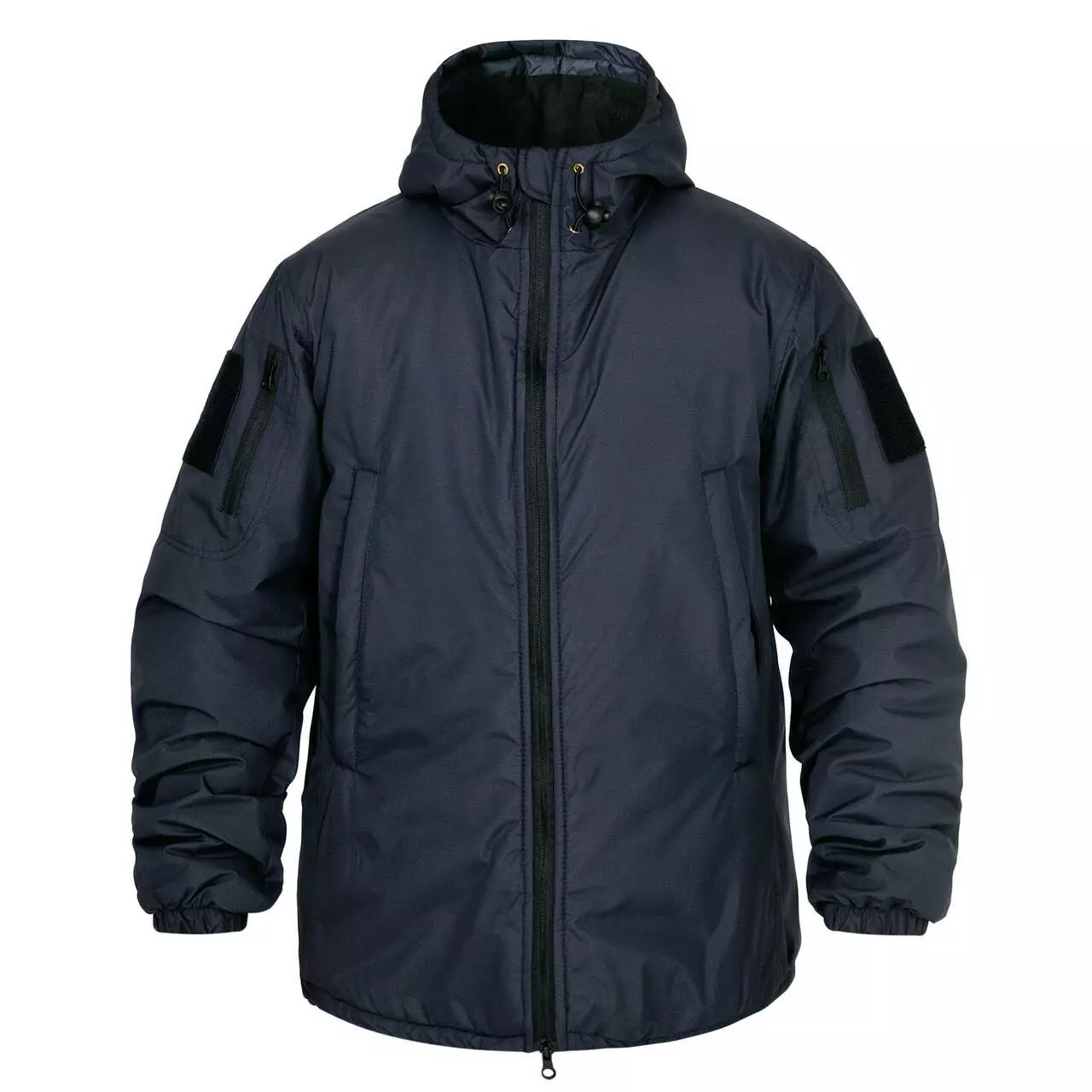 - Капюшон, оснащений утяжками для кращого прилягання та захисту від